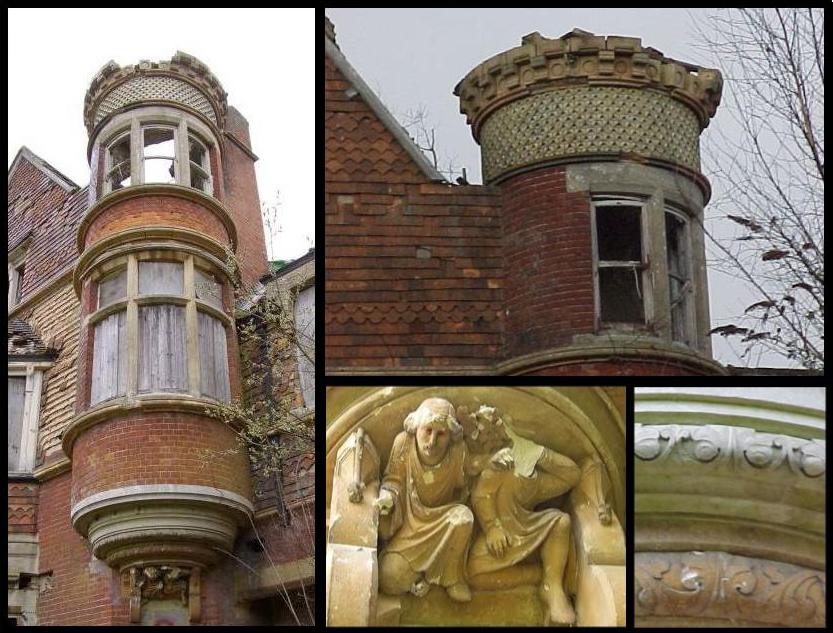 From the front drive, Beedingwood is a sad but magnificent sight, in the best tradition of Late Victorian architecture, her architect seems to have applied every adornment, pattern and style in his architectural vocabulary: gables, turrets, dormers, bays, bows, mullions, a porte-cochère and a distinctive round games room.