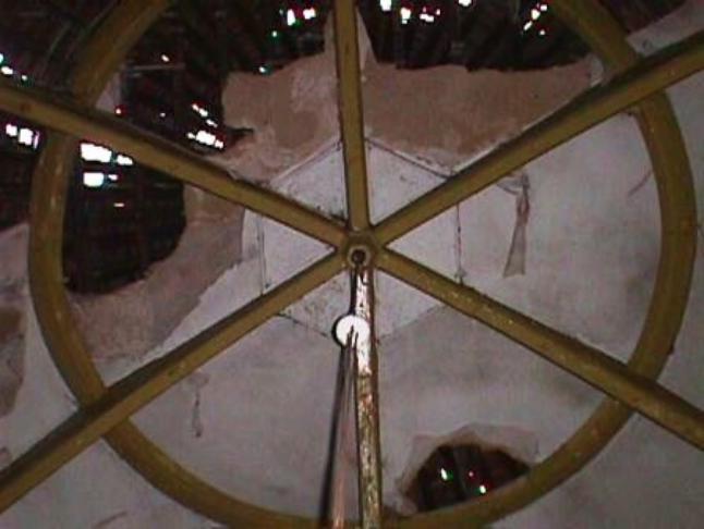 We perch on the joists looking around: they give a clear view to the hard, unforgiving floor 15 feet below but thankfully hold well enough for now.