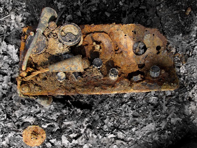 Aluminium aircraft component. Rumour has it that when the RAF left in 1946, tons of surplus parts